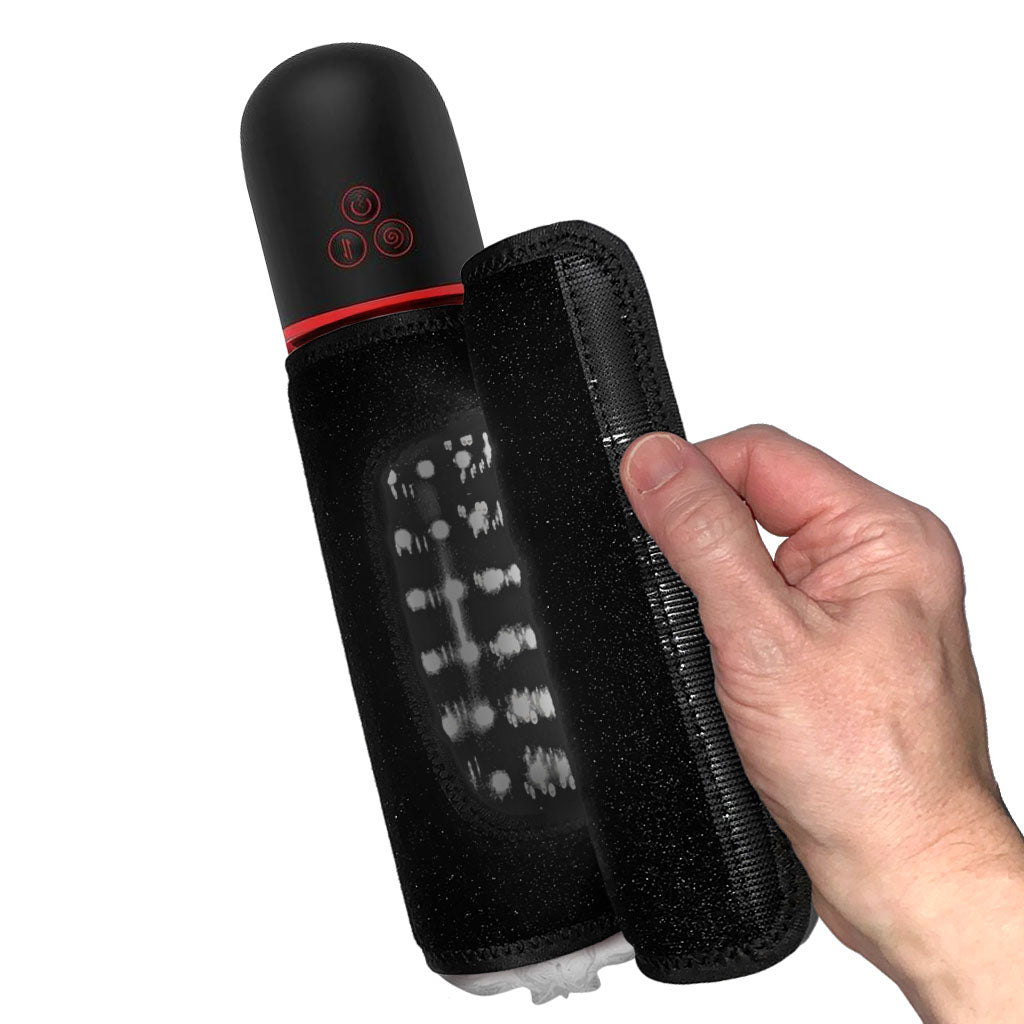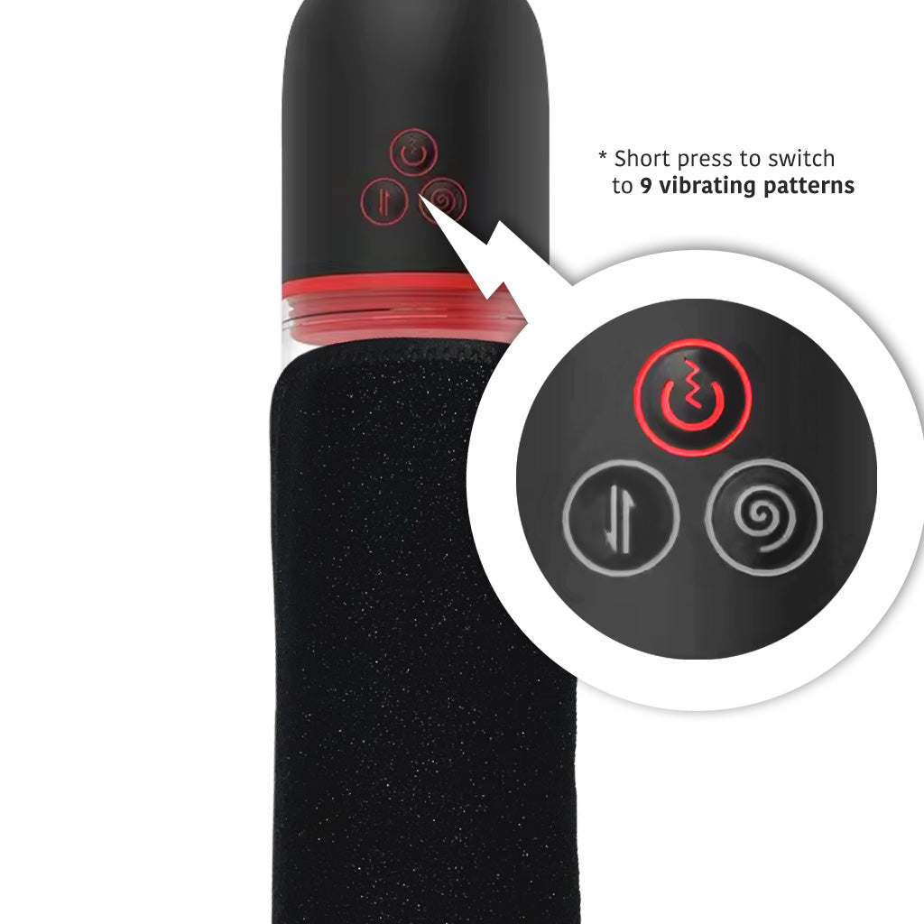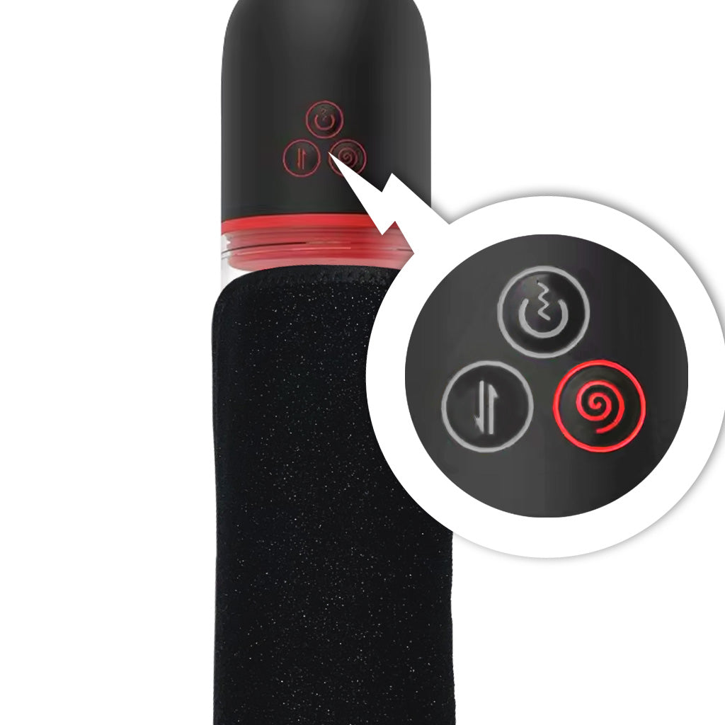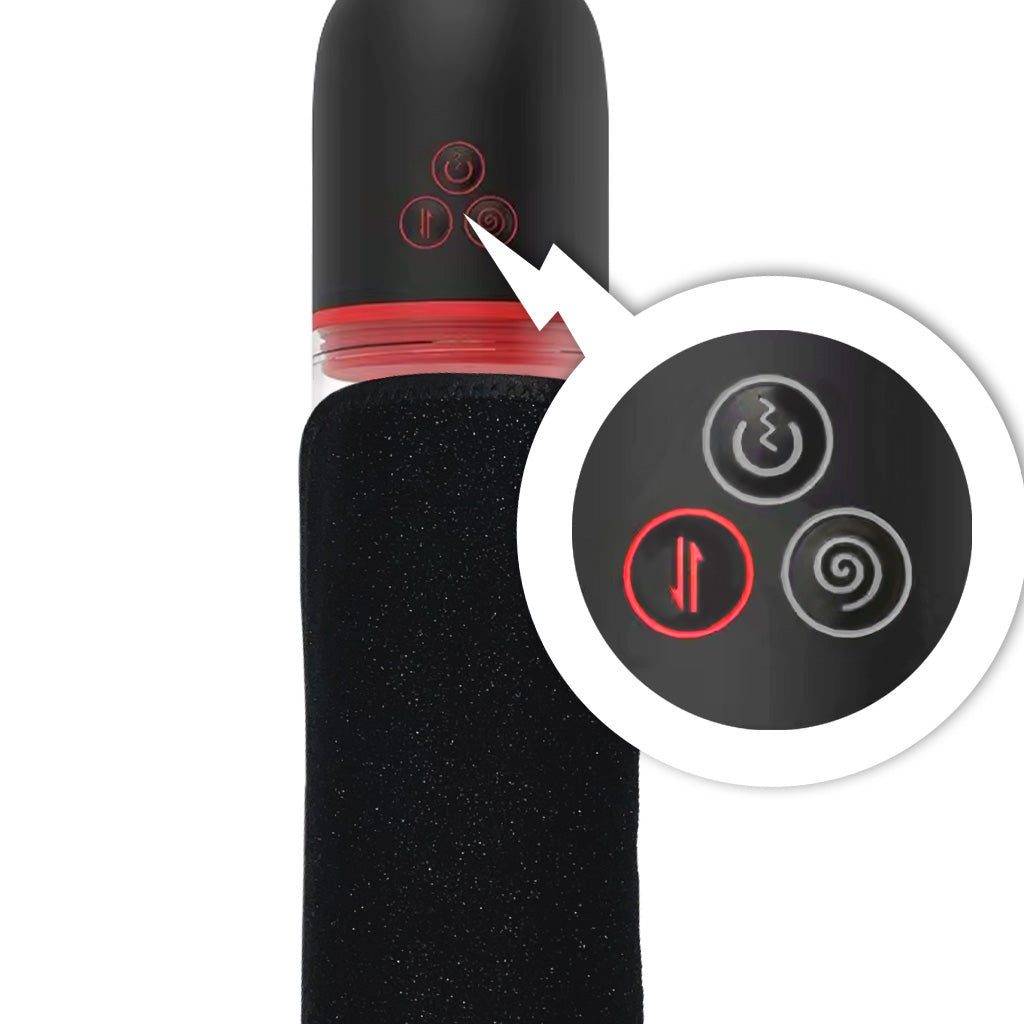 The massager cycles the pump on and off, moving the silicone sleeve for additional stimulation.